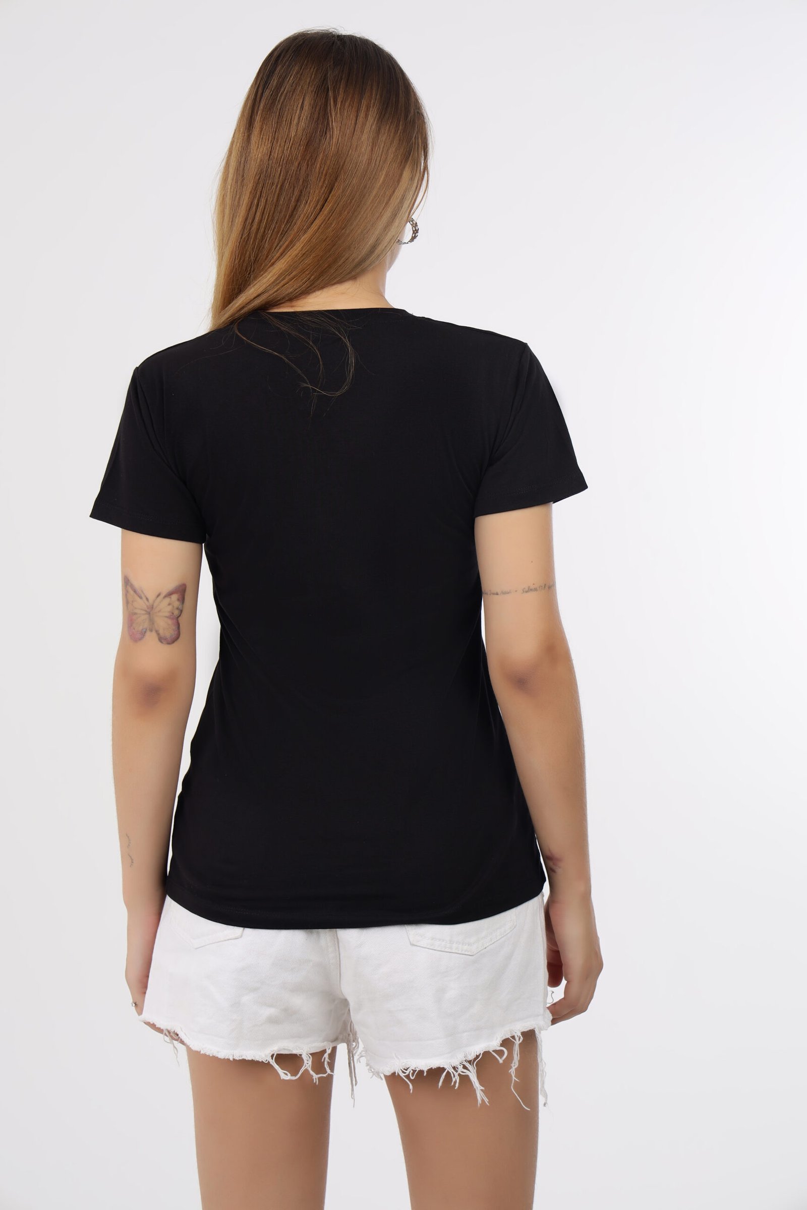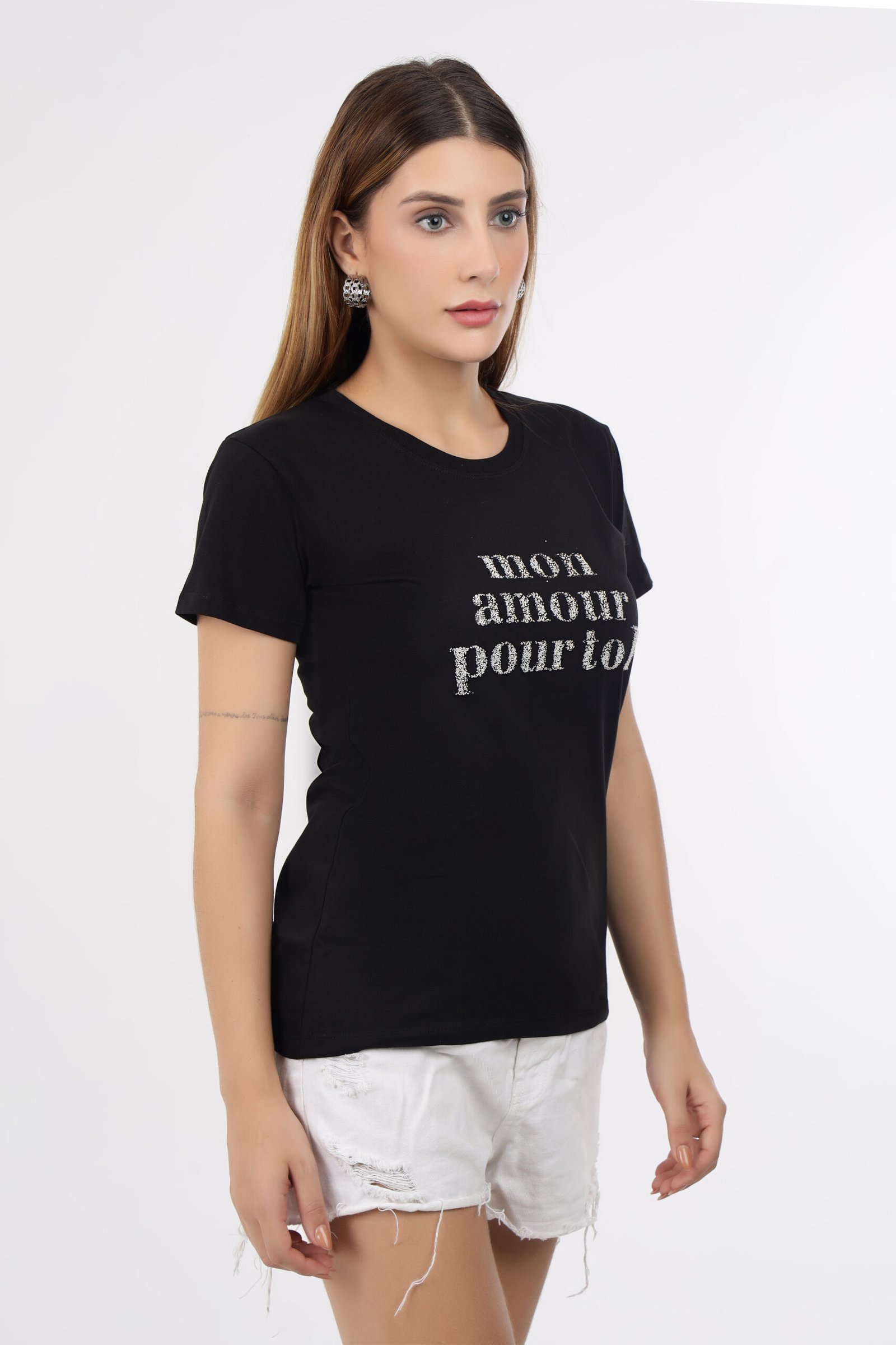 Wineberry Women’s Black Round Neck Chest Printed Cotton Tee – Comfortable 100% Sinker Fabric