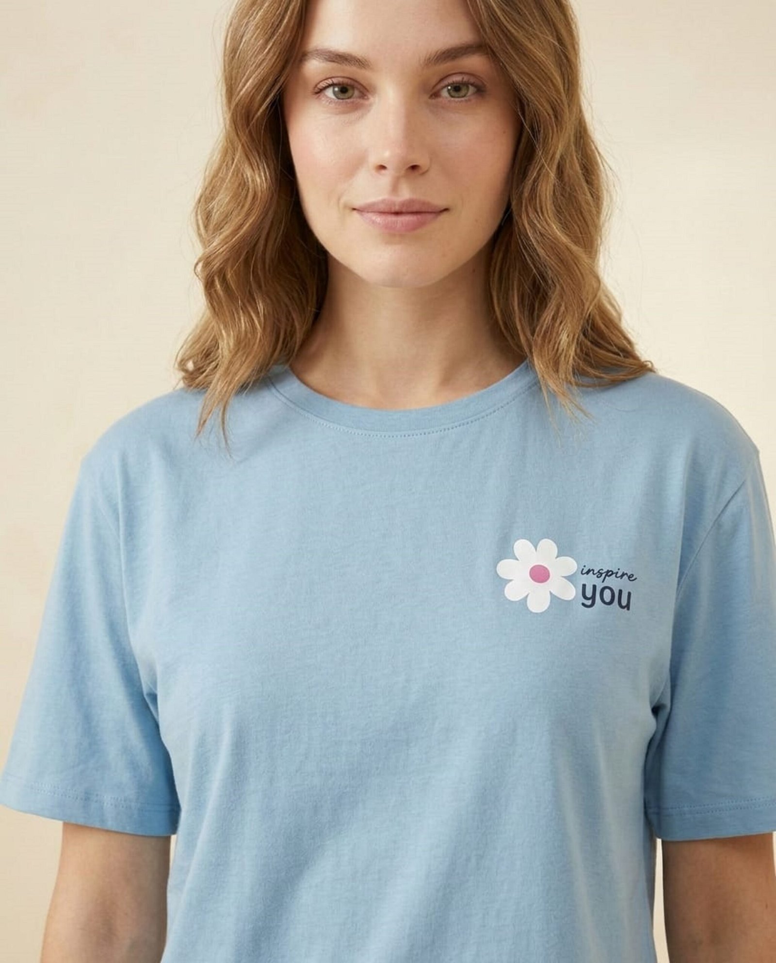 Comfortable two-piece lounge set featuring a short-sleeve t-shirt with a subtle front graphic and relaxed-fit wide-leg pants. Made from soft, breathable fabric, perfect for casual wear or everyday comfort.