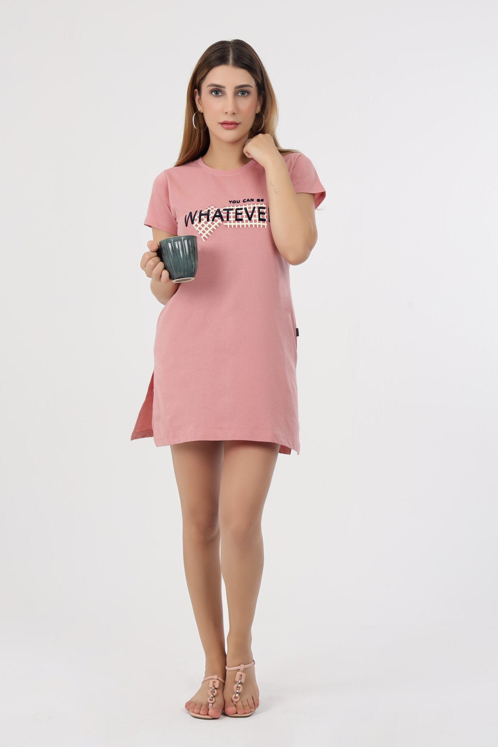 Be the first to review “Wineberry Women’s Dull Pink Round Neck Chest Printed Cotton Tee – Cotton Rich Sinker”