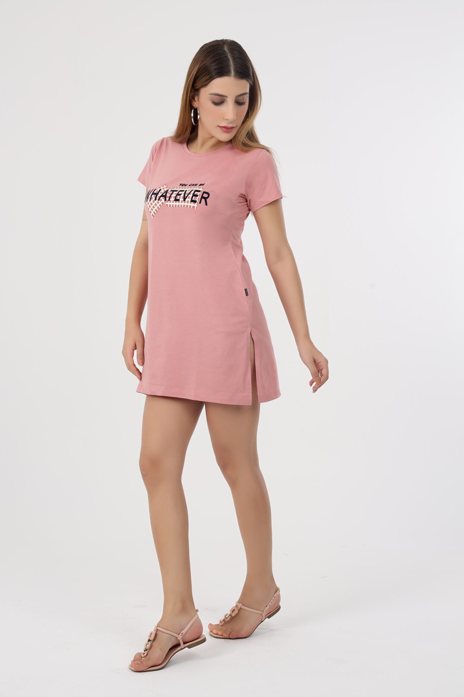 Wineberry Women’s Dull Pink Round Neck Chest Printed Cotton Tee – Cotton Rich Sinker